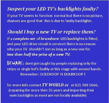 Telephone: 021-9880666 - Email: info@tvworld.co.za